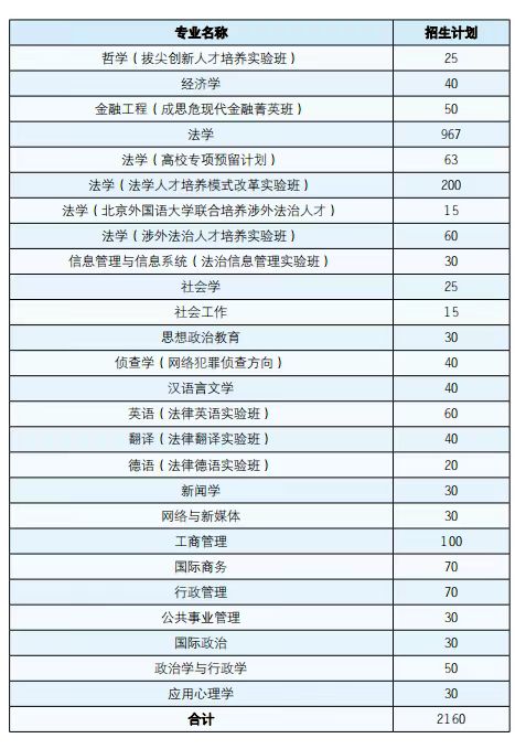 中國(guó)政法大學(xué)2023年各專(zhuān)業(yè)招生規(guī)模