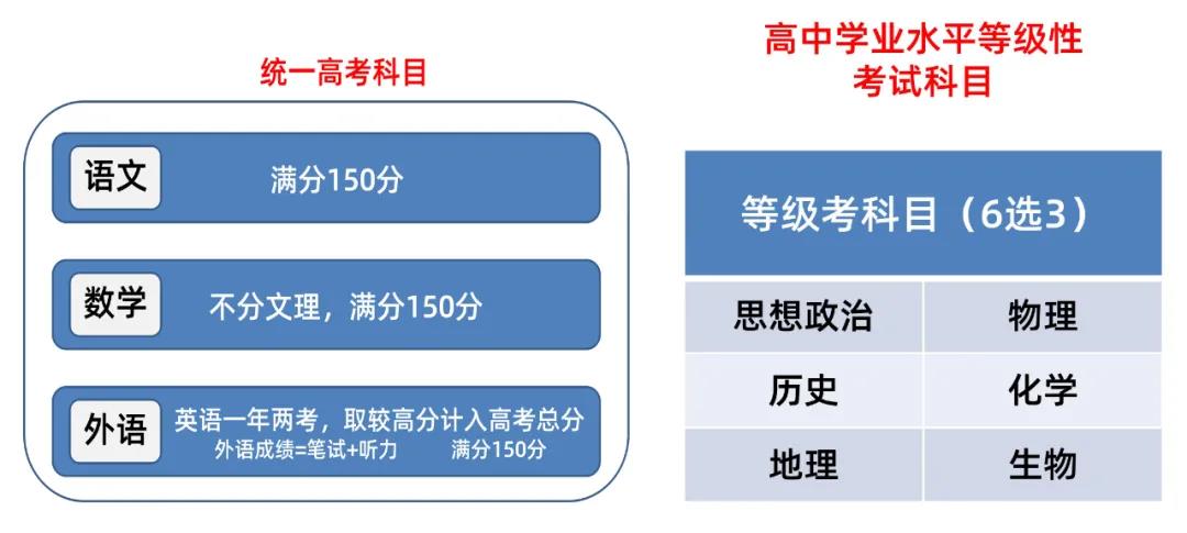 從2020年起,普通高校招生主要依據(jù)統(tǒng)一高考成績(jī)和普通高中學(xué)業(yè)水平等級(jí)性考試成績(jī),參考高中學(xué)生綜合素質(zhì)評(píng)價(jià)實(shí)施錄取。統(tǒng)一高考設(shè)有語(yǔ)文、數(shù)學(xué)、外語(yǔ)3個(gè)科目;等級(jí)性考試設(shè)有思想政治、歷史、地理、物理、化學(xué)、生物6個(gè)科目,考生須從中選擇3個(gè)科目。也就是說(shuō),每個(gè)考生共參加6個(gè)科目的考試。
