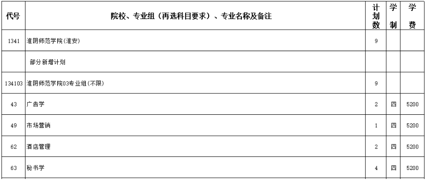 三、淮陰師范學(xué)院征求志愿招生計(jì)劃(新增)