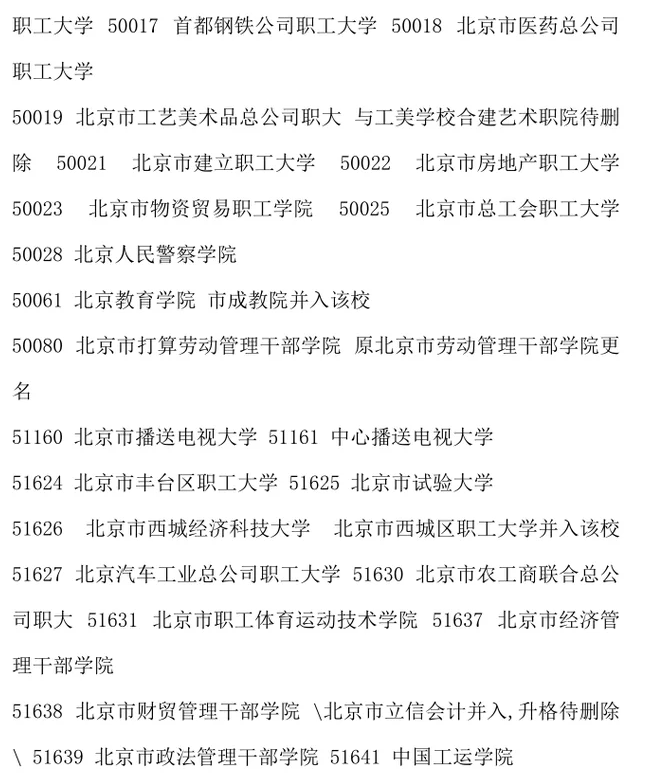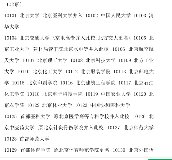 北京地區(qū)高校條報(bào)志愿代碼匯總