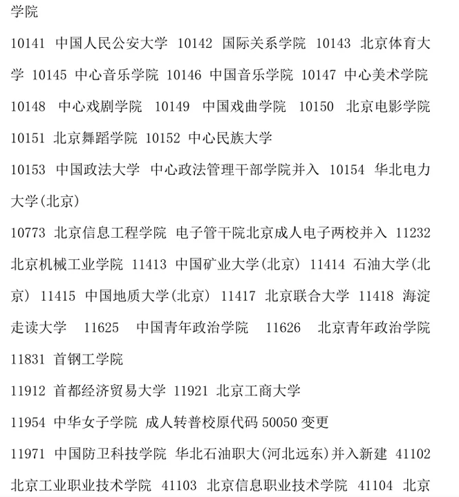 北京地區(qū)2026年高校填報(bào)志愿代碼匯總