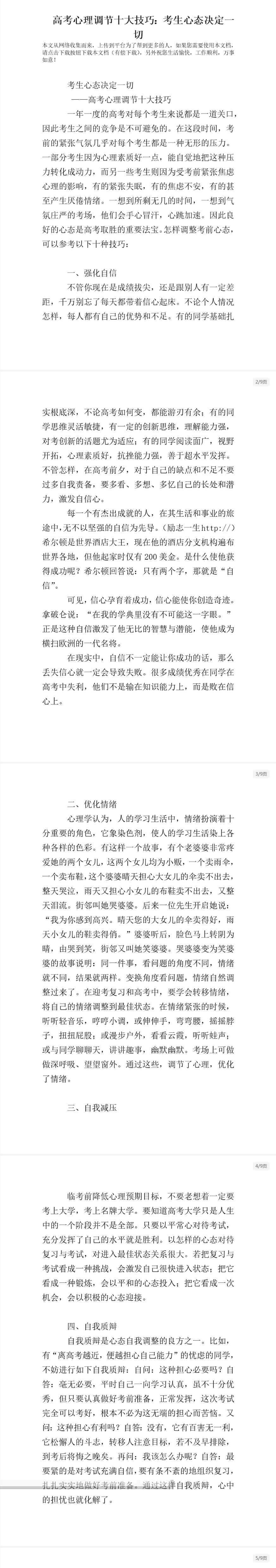 高考心理調(diào)節(jié)十大技巧:考生心態(tài)決定一切