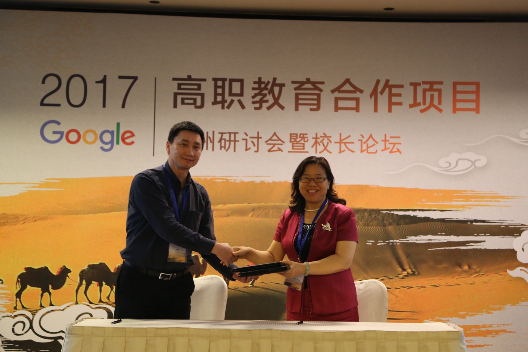 5月26日至27日,在谷歌公司主辦的2017年Google中國高職教育合作項(xiàng)目蘭州研討會暨校長論壇上,我校副院長徐紅代表學(xué)校與谷歌公司簽署合作協(xié)議,將在師資培訓(xùn)、專業(yè)規(guī)范開發(fā)、課程資源開發(fā)等方面展開合作。