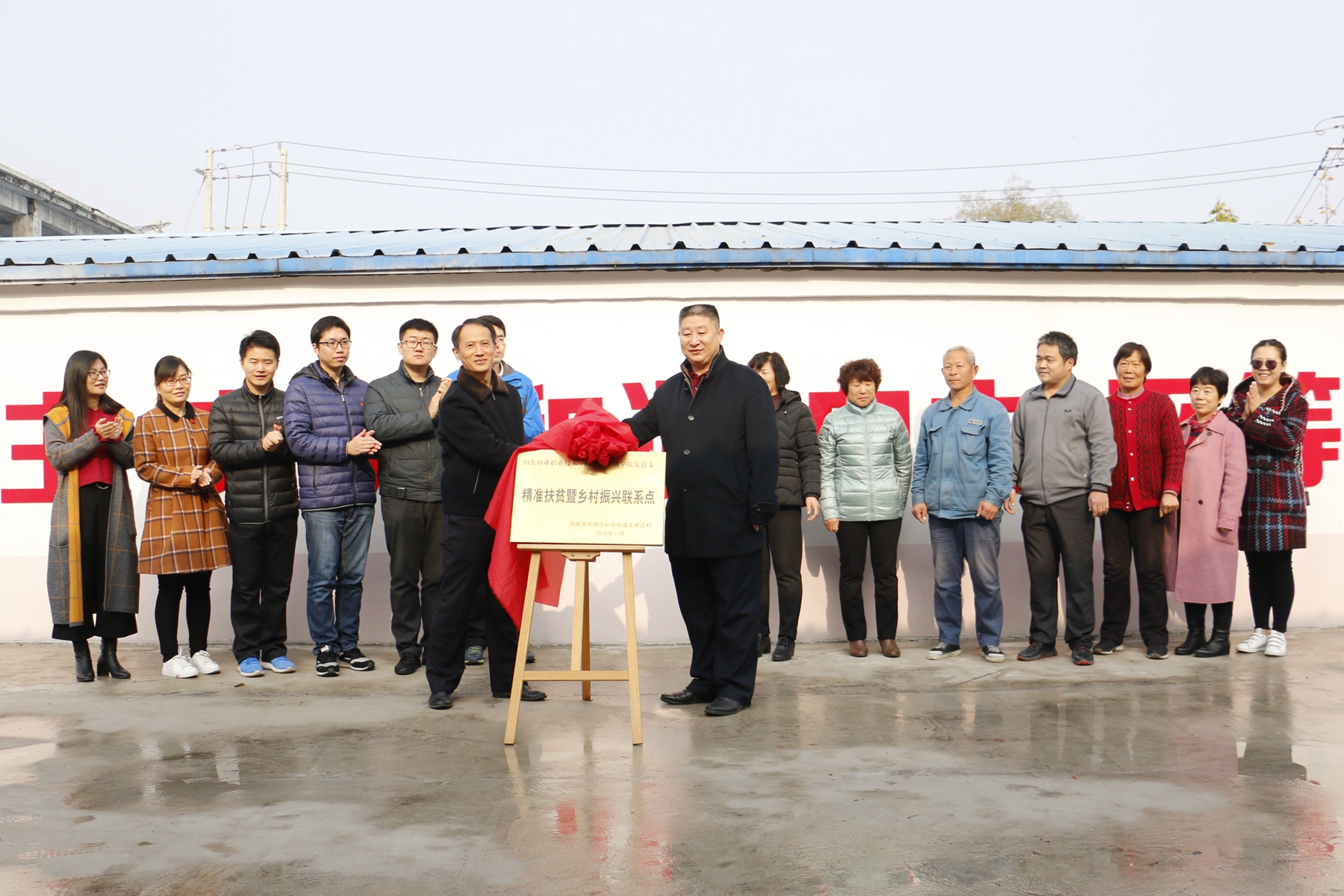 11月21日上午,會(huì)計(jì)金融學(xué)院精準(zhǔn)扶貧暨鄉(xiāng)村振興聯(lián)系點(diǎn)揭牌儀式在彩石街道王家莊村黨群服務(wù)中心舉行,會(huì)計(jì)金融學(xué)院黨總支書記李杰善,歷城區(qū)彩石街道黨工委委員、副主任葛慶明共同為聯(lián)系點(diǎn)揭牌。揭牌儀式由彩石街道王家管區(qū)書記徐明慧主持;彩石街道王家莊村支部書記張洪玉、村委會(huì)成員、部分村民代表及會(huì)計(jì)金融學(xué)院部分黨員代表參加了揭牌儀式。