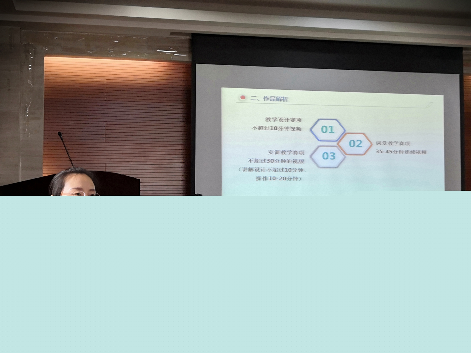 劉芹老師分別從參賽回顧、作品解析、參賽經(jīng)驗、作品準(zhǔn)備四個方面跟分享了自己參賽的心得體會。參賽回顧真切感人,作品解析深入透徹,參賽經(jīng)驗全面細致,作品準(zhǔn)備詳盡實在,她毫無保留地把自己團隊的成功經(jīng)驗分享給了大家,讓大家深受啟發(fā)深為感動??此坪唵蔚氖昼妳①愐曨l,卻凝聚了一個團隊三位教師半年的心血和院部、學(xué)校各方的支持。會后,教師發(fā)展中心及時將本次分享會的學(xué)習(xí)材料分享到了“師道無涯”教師培訓(xùn)QQ群,以使培訓(xùn)受益面最大化,產(chǎn)生“一人獲獎,全體受益”的良性效應(yīng)。