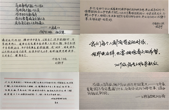 活動自上線以來得到積極響應(yīng),共有三千余名學(xué)生參加,閱讀書籍五千余本,總計(jì)打卡六萬余次。活動中,學(xué)生通過讀書分享和美文摘抄兩種方式參與,以拍照上傳至群相冊的形式打卡,引導(dǎo)學(xué)生在家放下手機(jī),重拾書本,通過分享美文佳句,交流心得感悟,利用空余時間培養(yǎng)讀書習(xí)慣,形成良好的閱讀氛圍。來自臨床醫(yī)學(xué)院學(xué)生朱秋儀在閱讀《月亮與六便士》后留言,“我們每個人都有茍且的時候,但即使這樣,也依舊要擁抱春天的希望”;護(hù)理學(xué)院學(xué)生張美慧看完《目送》片段后說,“有些事情只能一個人做,有些路只能一個人走,作為時代青年,我們要掌握自己的人生,走在自己的人生軌道上”。