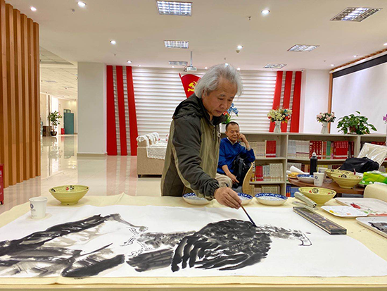 畫院執(zhí)行院長劉紅作畫“達(dá)摩面壁圖”;副秘書長馬靜揮墨書寫“先天下之憂而憂,后天下之樂而樂”;副院長李元明贈予學(xué)生一幅“未來可期”書法作品;副院長古云光作畫“聞雞起舞”,并將“天下為公”四字贈予云南工商學(xué)院。
