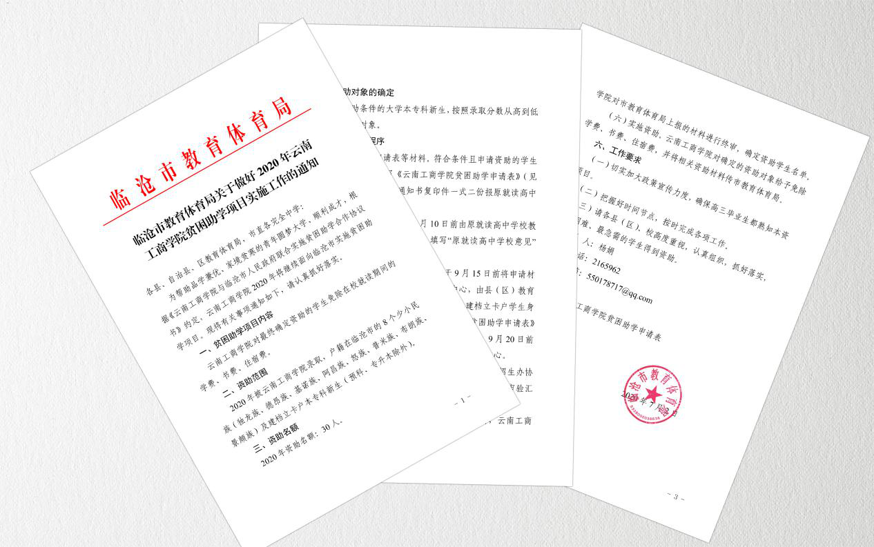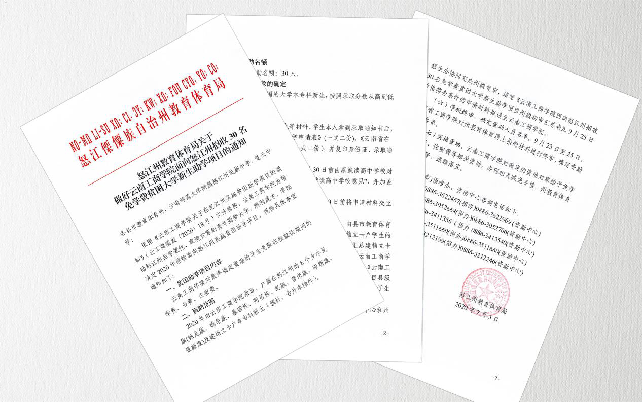 近日,怒江州和臨滄市兩地教育主管部門(mén)分別發(fā)出通知:在2020年高考招生錄取中,云南工商學(xué)院將分別為這兩個(gè)州市各提供30個(gè)全免費(fèi)入學(xué)名額。