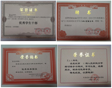 吳玉立同學于2017年10月加入計算機與信息工程學院(人工智能學院)團總支學生會,通過自己的積極努力獲得了老師和同學的認可,并在2018年4月?lián)瘟藞F總支學生會辦公室副部長一職。期間,她帶領辦公室干事舉辦各項活動,受到諸多好評,曾多次獲得校級“優(yōu)秀共青團員”、“優(yōu)秀共青團干”、“三好學生”等榮譽稱號,并在2019年12月光榮加入中國共產黨,成為一名中共預備黨員。
