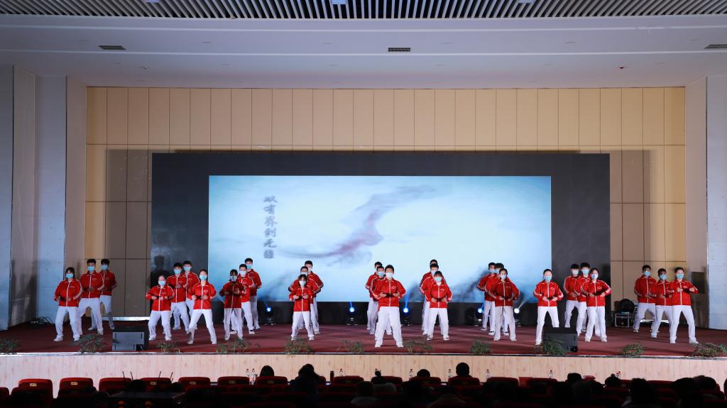體育運(yùn)動(dòng)委員會(huì)主任張靜致辭。她表示,“八段錦”是我國(guó)優(yōu)秀傳統(tǒng)文化,不僅內(nèi)涵豐富而且健身效果顯著,作為我校特色項(xiàng)目應(yīng)繼續(xù)傳承和推廣,希望全校師生共同參與進(jìn)來(lái),堅(jiān)持鍛煉、強(qiáng)身健體。