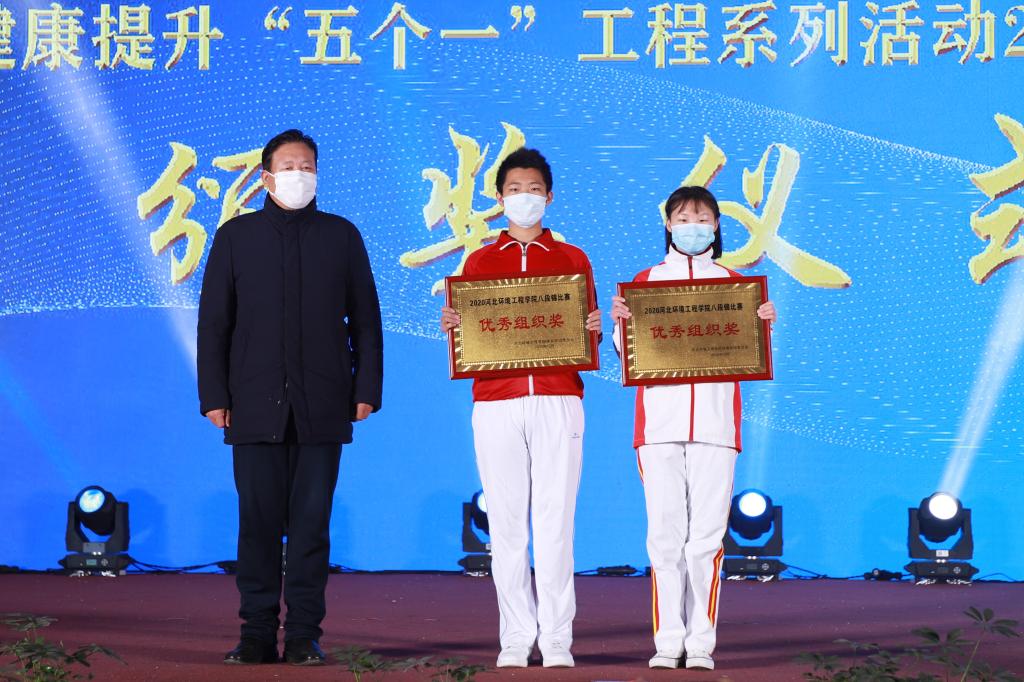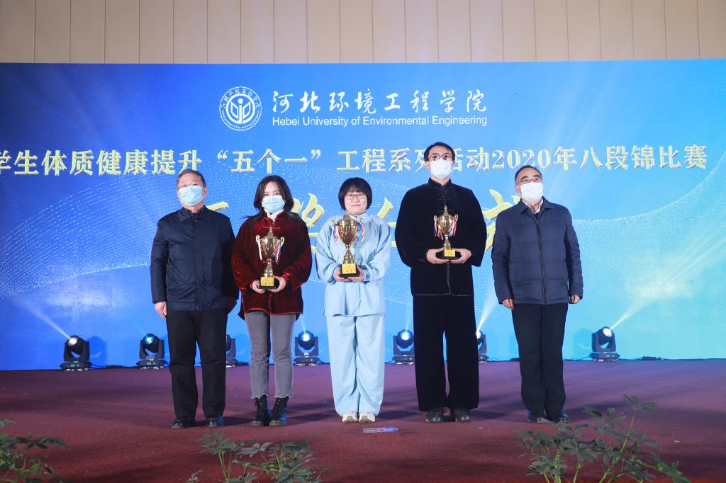 為進(jìn)一步推進(jìn)我校學(xué)生體質(zhì)健康提升“五個(gè)一”工程,切實(shí)提高全校師生體質(zhì)健康水平,以賽促學(xué)、以賽促教,培養(yǎng)環(huán)保人敢打敢拼、銳意進(jìn)取的意志品質(zhì)。12月3日,我校在大學(xué)生活動(dòng)中心舉辦2020年八段錦比賽。學(xué)校黨委書記朱立杰出席并作為教師代表隊(duì)一員參賽,學(xué)校黨委副書記、校長(zhǎng)張建民,黨委副書記高俊山,黨委常委、副校長(zhǎng)耿世剛、安立峰、張靜、官金華,黨委常委、紀(jì)委書記王松出席本次活動(dòng)。比賽由學(xué)校體育運(yùn)動(dòng)委員會(huì)主辦,體育系、工會(huì)、學(xué)生工作處承辦。比賽共有12支教師代表隊(duì)和8個(gè)系部的學(xué)生代表隊(duì),共計(jì)400余名師生代表參賽。