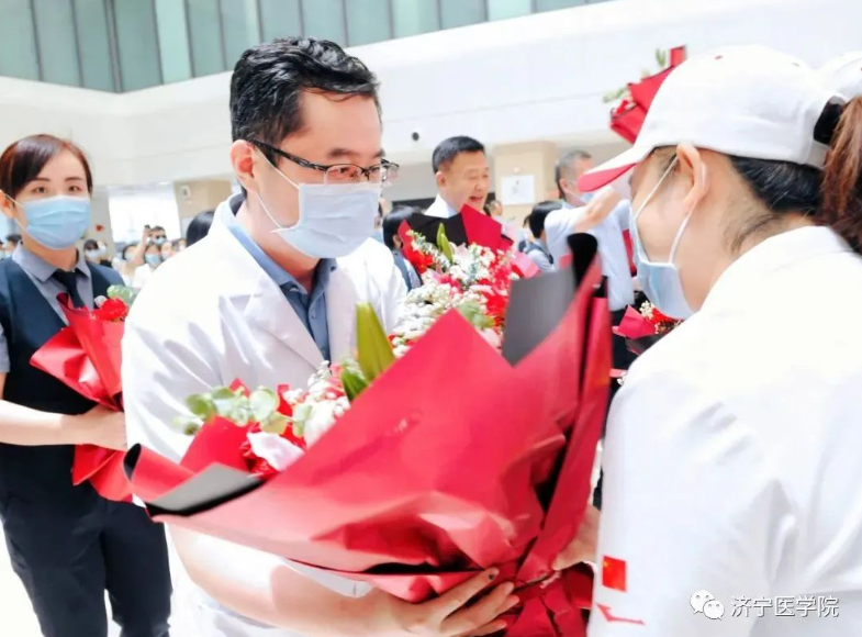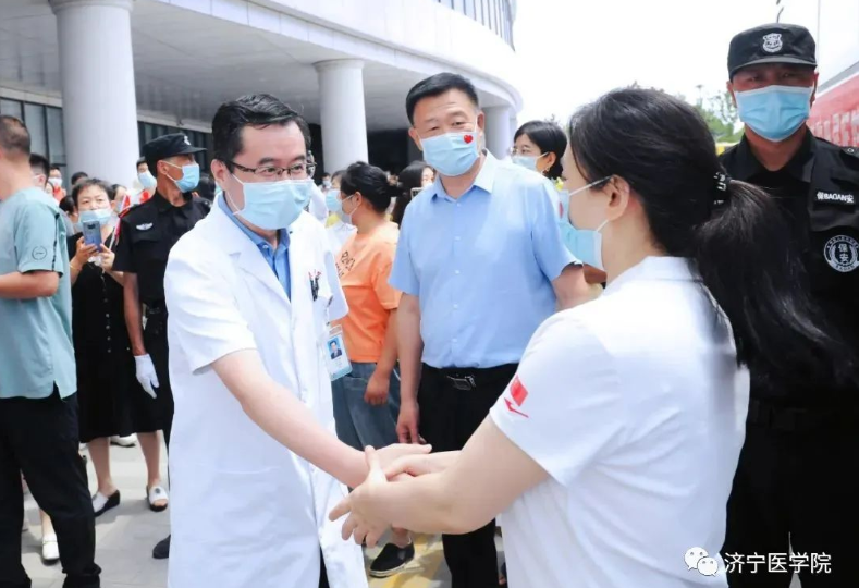 甘立軍代表附屬醫(yī)院干部職工對(duì)上海抗疫隊(duì)員們的凱旋表示熱烈歡迎,他表示,今年4月上海新冠肺炎疫情發(fā)生后,根據(jù)國(guó)家衛(wèi)生健康委統(tǒng)一部署,按照山東省委省政府工作要求,附屬醫(yī)院迅速組織28名醫(yī)護(hù)骨干組成援滬醫(yī)療隊(duì)逆行出征。援滬期間,全體隊(duì)員舍身忘我,勇往直前,成功治療大量患者,充分展現(xiàn)了附院人在危急關(guān)頭心系群眾,不懼危險(xiǎn),敢于勝利的工作精神和大愛(ài)擔(dān)當(dāng)。隊(duì)員中的黨員充分發(fā)揮先鋒模范作用,以身作則,率先垂范,6名隊(duì)員火線入黨,多名隊(duì)員向黨組織遞交了入黨志愿書(shū)。他希望全體隊(duì)員回到醫(yī)院后,克服麻痹思想、厭戰(zhàn)情緒、僥幸心理、松勁心態(tài),以時(shí)不我待的精神繼續(xù)抓實(shí)抓細(xì)疫情防控工作,以昂揚(yáng)的斗志和良好的精神風(fēng)貌,投入到“一院兩區(qū)”高質(zhì)量發(fā)展工作中,繼續(xù)為人民群眾生命健康保駕護(hù)航,以優(yōu)異成績(jī)迎接黨的二十大的勝利召開(kāi)。