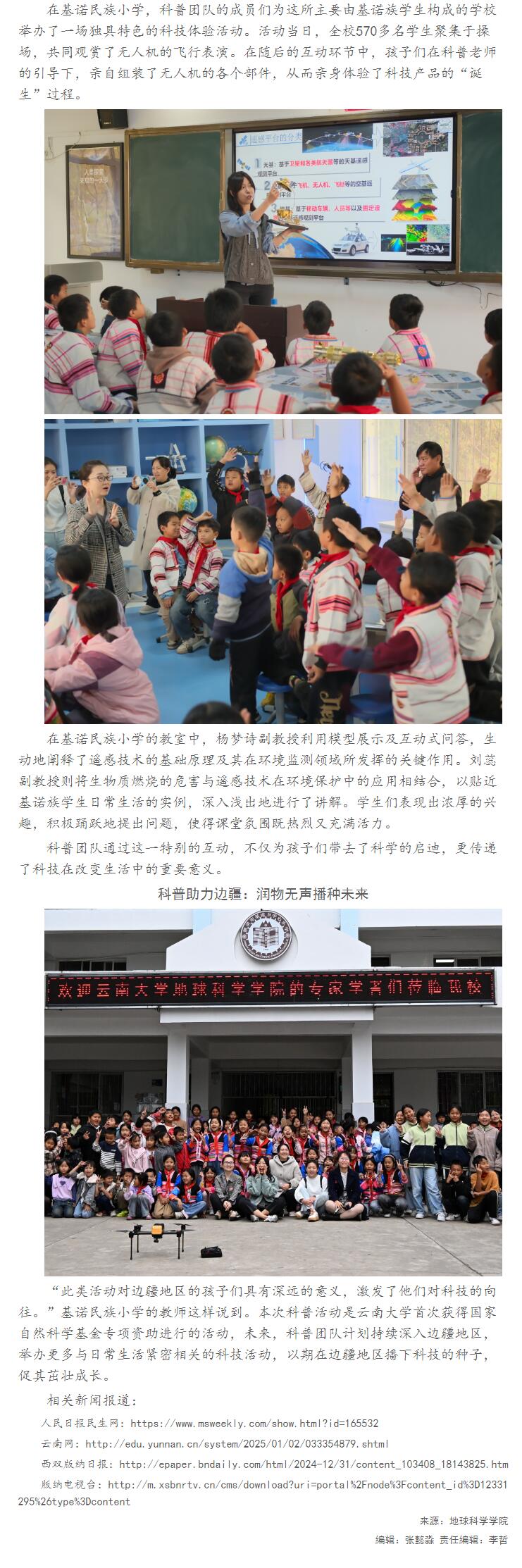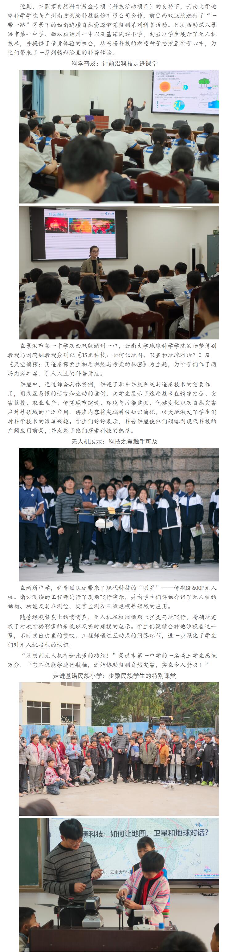 科技之翼飛入邊疆:云南大學(xué)自然資源智慧監(jiān)測(cè)科普?qǐng)F(tuán)隊(duì)走進(jìn)西雙版納中小學(xué)