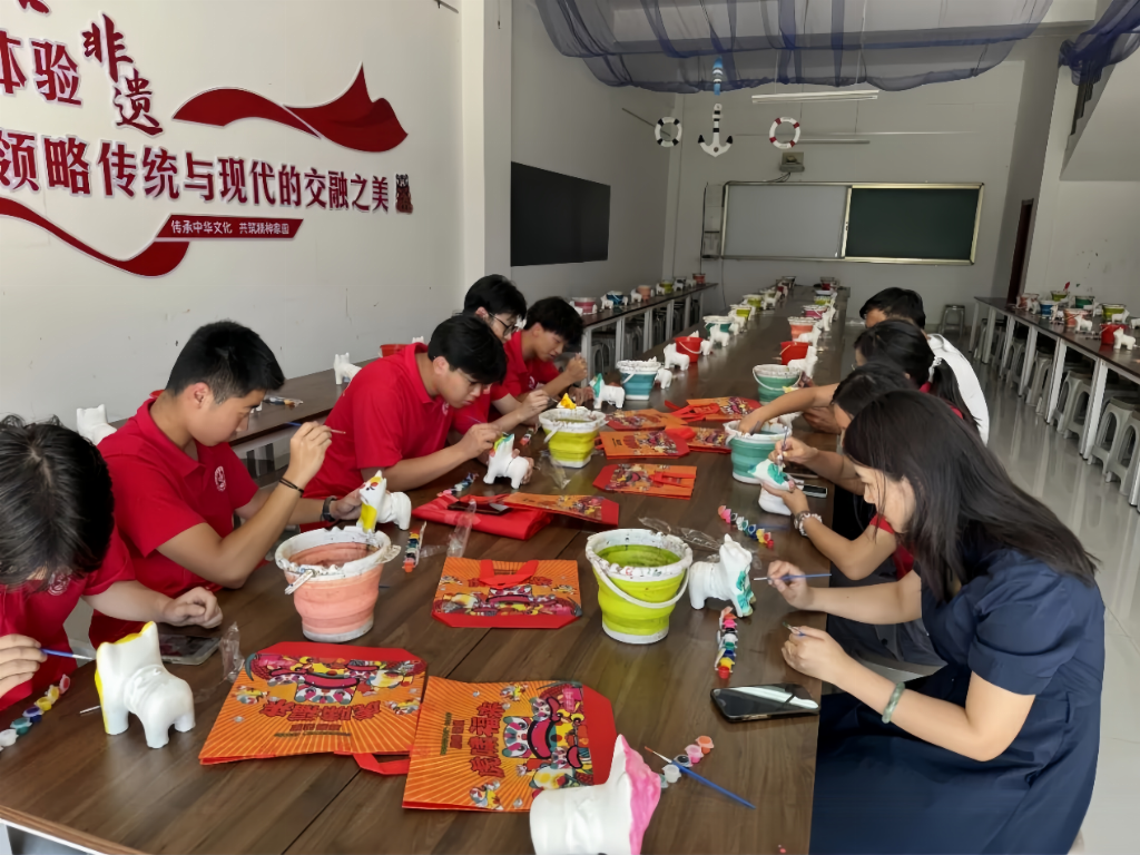 文化傳承是此次實踐的另一重點。在紅高粱藝博園,實踐隊詳細(xì)了解了高密非遺“泥老虎”的制作技藝與文化內(nèi)涵。在國家級非遺傳承人聶老師的悉心指導(dǎo)下,隊員們親手體驗了這一傳統(tǒng)工藝的魅力。“取本地聶家莊泥胚經(jīng)‘三揉三曬’至細(xì)膩堅韌,手工捏制虎頭虎身輪廓,用竹刀精刻眉眼、胡須等花紋,晾曬定型后以紅、黃、綠等鮮亮色彩涂繪,最后裝上彈簧機(jī)關(guān)...”每一步都凝聚著匠人的智慧與心血。