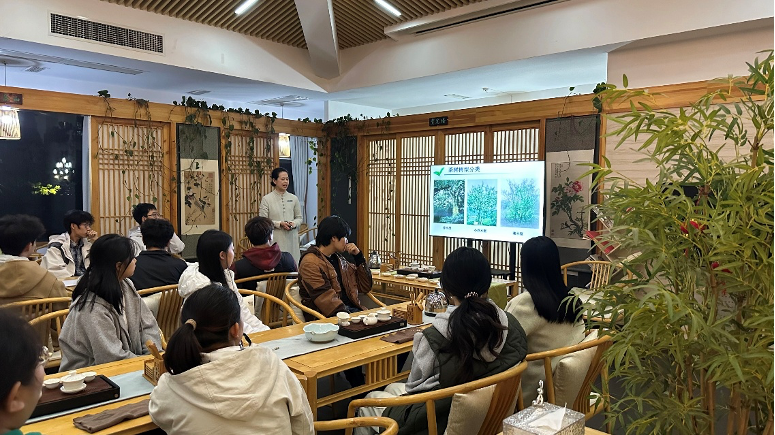 為基礎環(huán)節(jié),“品味茶香,探索茶源” 研習率先開展。大樹茶業(yè)專業(yè)導師從茶葉歷史、產(chǎn)區(qū)特性、種類區(qū)分切入,解讀茶文化內(nèi)涵與時代價值。借助茶湯品鑒、茶禮演示、茶產(chǎn)業(yè)可持續(xù)案例分享等沉浸式環(huán)節(jié),學生既掌握茶文化基礎知識,也直觀了解茶葉從采摘到加工的勞動流程,為后續(xù)實踐奠基,更深化對 “勞動創(chuàng)造價值” 的理解。