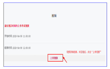 3.確認(rèn)上傳開始時(shí)間和結(jié)束時(shí)間,在規(guī)定的時(shí)間內(nèi)點(diǎn)擊“上傳視頻”。