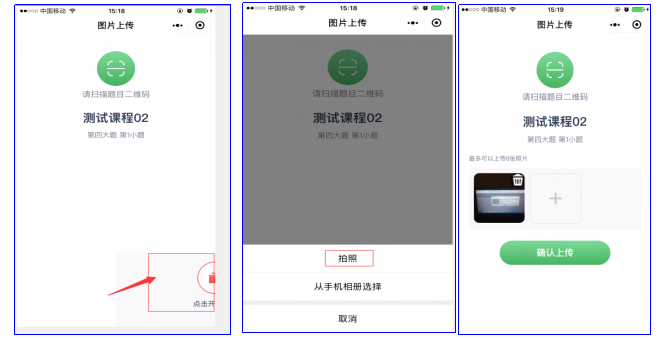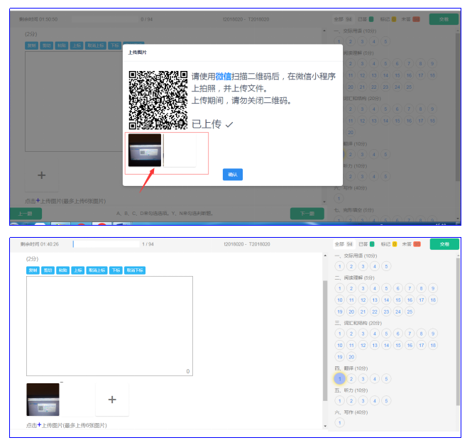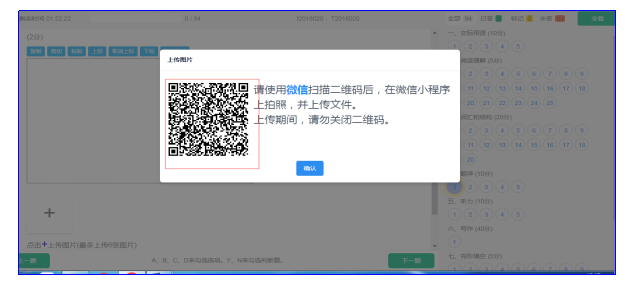 ②彈出答題二維碼,掃描二維碼拍照上傳: