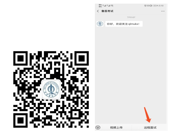 1.關(guān)注"魯醫(yī)考試"微信公眾號(hào),選擇底部右邊“遠(yuǎn)程面試”。