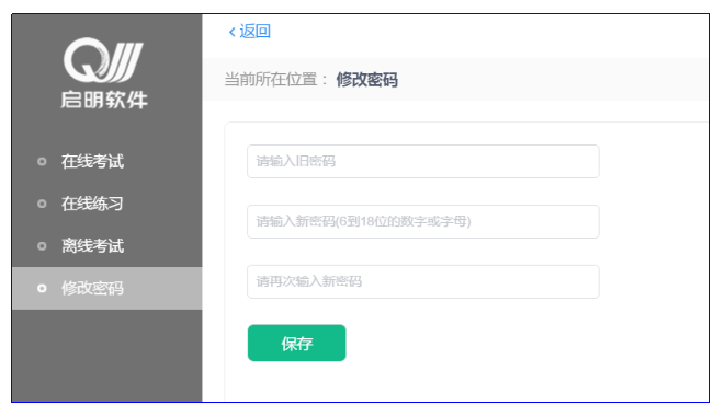此功能供考生管理考試平臺(tái)的密碼,若考生遺忘密碼,可以向技術(shù)支持人員申請(qǐng)重置密碼,初始密碼為證件號(hào)后6位。