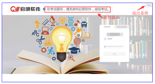 *考生端窗口進(jìn)行了防作弊處理,考生端啟動(dòng)后,窗口全屏顯示,且通過(guò)鍵盤操作無(wú)法切換到其它窗口。登錄界面可通過(guò)“關(guān)閉操作”退出考試。