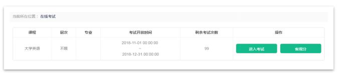 *剩余考試次數(shù)為本課程可進(jìn)行在線考試的次數(shù),測(cè)試為5次,每完成一次考試,剩余次數(shù)將減少一次。正式考試只有1次。