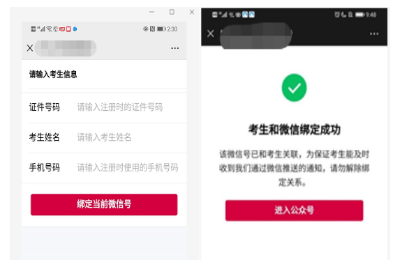 2.進(jìn)入考試平臺(tái),輸入個(gè)人信息綁定微信。