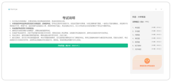 (2)點(diǎn)擊“進(jìn)入考試”,強(qiáng)制閱讀時(shí)間結(jié)束后,可以點(diǎn)擊“開始答題”即正式進(jìn)入答題頁(yè)面。