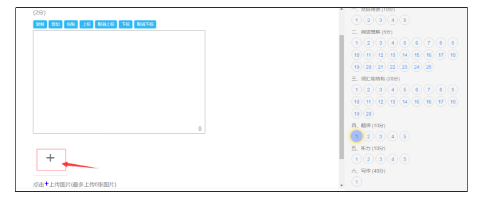 ①點(diǎn)擊答題區(qū)域下方上傳圖片按鈕,如圖: