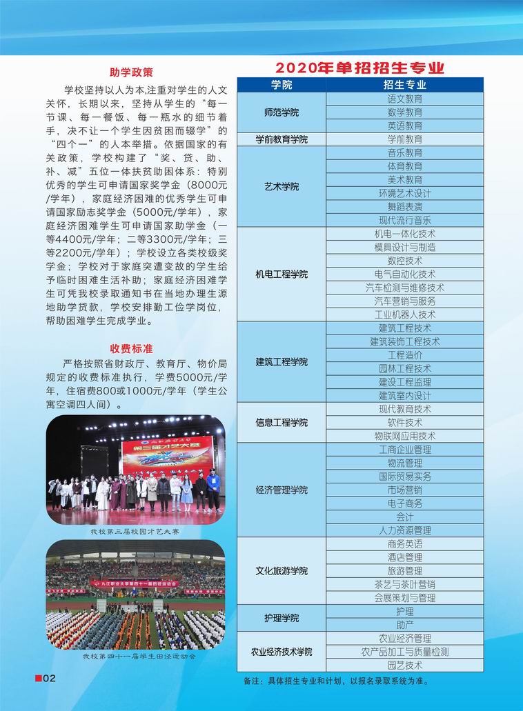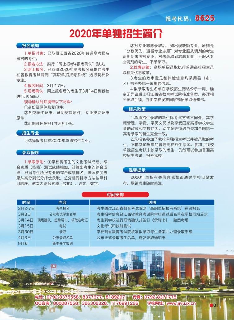 九江職業(yè)大學(xué)2020年單獨(dú)招生簡章