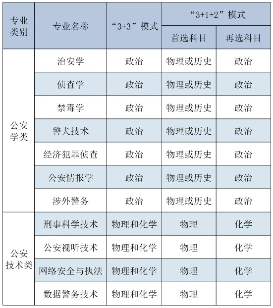 中國(guó)刑事警察學(xué)院2024年選考科目要求