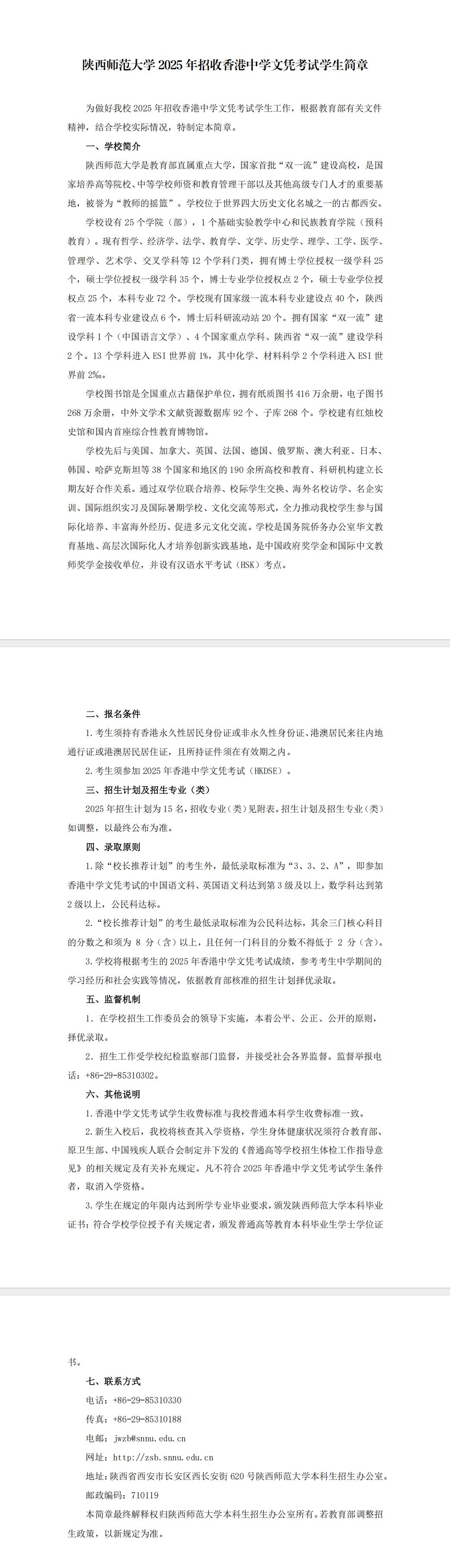 陜西師范大學(xué) 2025 年招收香港中學(xué)文憑考試學(xué)生簡章