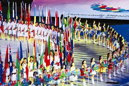 精彩中國,再獻體壇精彩盛會;青春鵬城,匯聚五洲青春健兒。深圳第二十六屆世界大學(xué)生夏季運動會8月12日晚在廣東省深圳市隆重開幕。國家主席胡錦濤出席開幕式并宣布本屆大運會開幕。152個國家和地區(qū)的大學(xué)生體育代表團沿著“青春大道”相繼入場。在這幸福的時刻,英國運動員引導(dǎo)員杲春陽、格魯吉亞運動員引導(dǎo)員姜春瑩、斯威斯蘭運動員引導(dǎo)員李娜、肯尼亞運動員引導(dǎo)員胡夢歌等我校學(xué)生精神抖擻地出現(xiàn)在青春大道上。