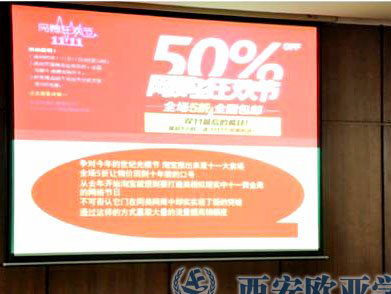 (圖二)參與“魚苗計劃”的學(xué)生現(xiàn)場展示了世紀光棍節(jié)調(diào)研PPT、MVP淘寶網(wǎng)店、特產(chǎn)淘淘網(wǎng)店的團隊成果。