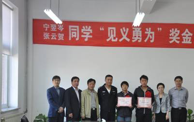人的大連科技學(xué)院兩名學(xué)生寧翌岑和張?jiān)瀑R,高度贊揚(yáng)了他們舍己救人的行為。在得知兩名學(xué)生見義勇為的事跡后,學(xué)院黨委及時(shí)下發(fā)了《關(guān)于開展向?qū)幰钺?、張?jiān)?賀同學(xué)學(xué)習(xí)活動(dòng)的通知》,授予兩名學(xué)生“見義勇為模范”稱號(hào),號(hào)召全院學(xué)習(xí)他們的先進(jìn)事跡和高尚品格,并于1月4日,召開表彰大會(huì)。自此,科技學(xué)院上下掀