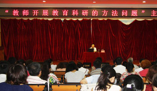 黃崴副院長(zhǎng)是教育學(xué)博士、教授、華南師范大學(xué)、中山大學(xué)博士生導(dǎo)師,發(fā)表論文120多篇,出版著作20多部,主持國(guó)家、省部級(jí)等各種科研課題30多 項(xiàng),有著豐富的項(xiàng)目申報(bào)、實(shí)施經(jīng)驗(yàn)。他根據(jù)自身的積累和思考,和教師交流了兩項(xiàng)內(nèi)容,第一部分是闡述教師參與科研的必要性,明確了教育研究是什么的問(wèn)題, 列舉并說(shuō)明了五種主要的研究方法。第二部分就項(xiàng)目來(lái)源、如何設(shè)計(jì)項(xiàng)目和參與申報(bào)、如何實(shí)施項(xiàng)目及項(xiàng)目成果的呈現(xiàn)進(jìn)行了講解。講解中展示了很多優(yōu)秀項(xiàng)目資 料,給聽(tīng)眾留下了深刻印象。