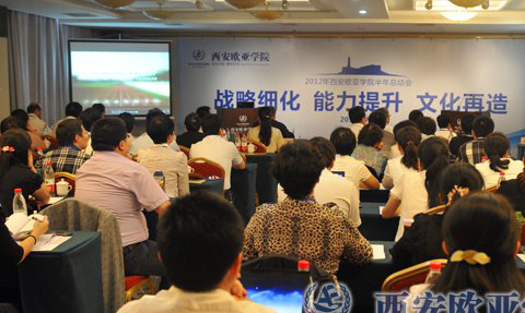 7月3-4日,我院組織院內(nèi) 各單位中層以上干部及教學一線教師代表120余人,以“戰(zhàn)略細化、能力提升、文化再造,確保‘四四二’戰(zhàn)略第一階段目標實現(xiàn)”為主題,召開了半年工作總結 會議。會議由我院副院長劉瑾教授和院長助理李正主持,特邀省政協(xié)原秘書長惠世武先生、省教育廳民辦教育處權秋虎處長、中國傳媒大學王保華教授、國金投資有 限公司CEO林嘉喜先生參加。