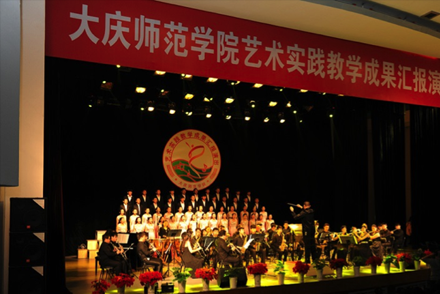 2014年1月3日下午,大慶師范學(xué)院“藝術(shù)實(shí)踐教育成果匯報(bào)”演出在大學(xué)生活動(dòng)中心舉行。大慶油田黨委副書記、紀(jì)委書記王昆,大慶油田工會(huì)主席史新,大慶油田文化集團(tuán)總經(jīng)理黎鶴等油田領(lǐng)導(dǎo);徐克明、王革、楊銳鋒、呂曉波、劉恒、張國(guó)軍、谷為等學(xué)校領(lǐng)導(dǎo)及千余名師生員工觀看了演出。