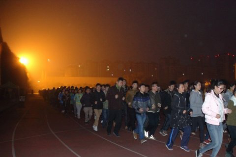 當日清晨6點半,天還沒亮,晨跑的哨聲已經(jīng)吹響,同學們三三兩兩的趕往田徑運動場,伴隨著晨光與響亮的口號,邁著整齊的步伐,開始了本學期的首次晨練,長龍般的隊伍成為清晨校園中一道亮麗的風景線。