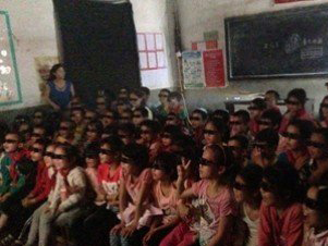 學(xué)生們觀看3D《里約大冒險(xiǎn)》歡呼連連