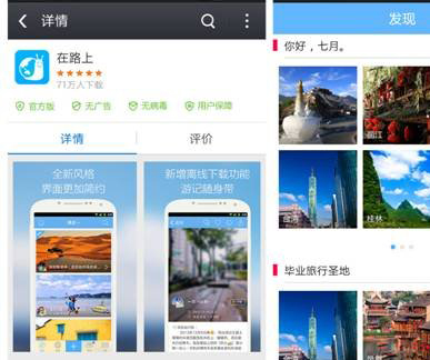 “在路上”是一款游記神器,通過它,你可以在旅途中拍照或添加文字描述來記錄某一個瞬間,它會自動生成包含照片、文字和位置信息的游記,并且還 會通過GPS追蹤旅行者的整個旅行路線,將游記和地圖整合到一起。這些足跡碎片串聯(lián)起來,就構(gòu)成了完整的旅途記錄和“手機(jī)版攻略”,以后你就可以像播放電 影一樣回憶這次畢業(yè)旅行。