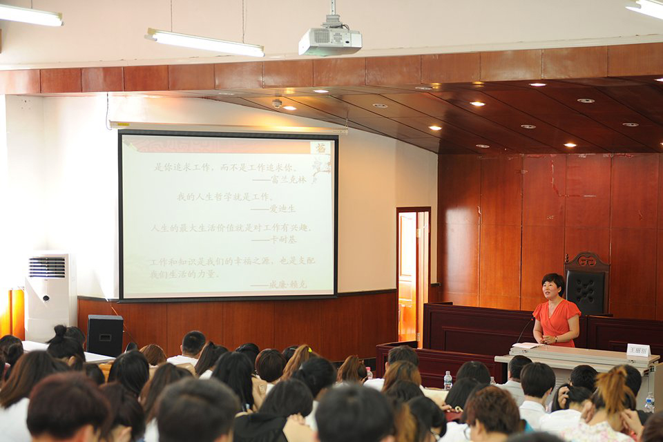 在宣講中,王老師對什么是工作、如何看待工作以及如何工作三點(diǎn)內(nèi)容做出了詳細(xì)的講解,指出工作不僅僅只是獲取生活來源的方式,更應(yīng)該是我們?yōu)橹畩^斗 終生的事業(yè),對待工作應(yīng)該飽含熱情,腳踏實(shí)地,敬職敬業(yè)。宣講中,王老師列舉了許多敬業(yè)人物的事例,引用名人語錄幫助學(xué)生更好地理解,并號召全體學(xué)生在未 來的平凡工作中展現(xiàn)自己的風(fēng)采。王老師語言幽默,談話平易近人,講座過程中時常與同學(xué)互動,會場的聽眾都聽得津津有味。