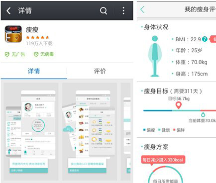 推薦理由:俗話說“每逢佳節(jié)胖三斤”,將近2個月的暑期,很多同學(xué)肯定因為媽媽做的飯菜太好吃又長胖了,無臉回學(xué)校見同學(xué),現(xiàn)在用“瘦瘦”減肥還來得及。這款打造完美身材的必備軟件已為700多萬用戶成功減肥,根據(jù)你的性別、身高、體重、年齡等資料為你量身定制個性化的減肥計劃,更有私人減肥顧問服務(wù)問你答疑解惑,讓你在最短時間內(nèi)快速減肥成功。