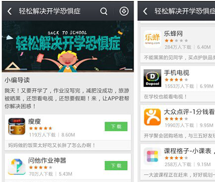 圖1:應(yīng)用寶上線“解決開學(xué)恐懼癥”應(yīng)用專題