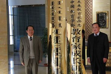 中國教育學(xué)會常務(wù)副會長、《未來教育家》雜志總編輯劉堂江與錫林郭勒職業(yè)學(xué)院院長特力更共同為教育家成長研究院揭牌。
