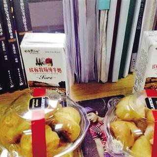 重大圖書館發(fā)給考研學(xué)生的泡芙和牛奶。 重慶晨報記者 王鑫 通訊員 祝琨卓 攝