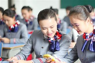 上課鈴聲響起,一群美麗的 “空姐”拿著教材匆匆走進(jìn)教室,與以往不同的是,今天她們每人都帶上了手機(jī)。“同學(xué)們,請(qǐng)你們拿出手機(jī),搜一下國(guó)航會(huì)員卡的名字及等級(jí)?!薄翱战恪眰兡闷鹱郎系氖謾C(jī)搜索數(shù)秒后異口同聲:“知音卡”。