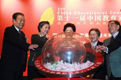 2014年12月5日至6日,第十一屆中國(guó)教育家大會(huì)暨中國(guó)現(xiàn)代職業(yè)教育發(fā)展大會(huì)在北京釣魚(yú)臺(tái)國(guó)賓館隆重舉行。大會(huì)邀請(qǐng)了十一屆全國(guó)人大常委會(huì)副委員長(zhǎng)、原國(guó)務(wù)委員陳至立、十屆全國(guó)人大常委會(huì)副委員長(zhǎng)何魯麗等國(guó)家領(lǐng)導(dǎo)人以及全國(guó)知名高校校長(zhǎng)、著名教育家和優(yōu)秀教育工作者等數(shù)千人在此齊聚一堂。大會(huì)圍繞“深化教育體制改革,推進(jìn)未來(lái)創(chuàng)新人才培養(yǎng)”這一主題,對(duì)當(dāng)前教育改革與發(fā)展的趨勢(shì)、面臨的機(jī)遇與挑戰(zhàn)等問(wèn)題展開(kāi)深入的探討。