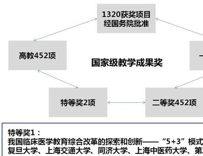 節(jié)點回放 2014年9月10日,國家級教學(xué)成果獎1320個獲獎項目經(jīng)國務(wù)院批準(zhǔn),由教育部向全社會公布。高等教育的兩項特等獎,引起社會的關(guān)注和贊譽。復(fù)旦大學(xué)等校的“5+3”模式和南京大學(xué)的“三三制”,體現(xiàn)著為全體人民健康服務(wù)、為全體學(xué)生成長服務(wù)的價值導(dǎo)向。