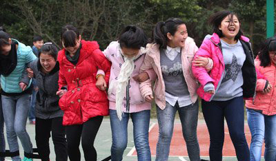 孩子們?cè)谌の哆\(yùn)動(dòng)會(huì)上盡情玩耍,享受著快樂(lè)。 記者 李文科 攝 華龍網(wǎng)1月11日16時(shí)46分訊(記者 張暢)“我希望2015年有一副乒乓拍”、“新的一年我希望有雙新運(yùn)動(dòng)鞋”……這些小小的心愿來(lái)自重慶市兒童愛(ài)心莊園的孩子們。有心的志愿者們搜集了孩子的這些心愿,今天他們不僅帶著孩子們所希望擁有的禮物來(lái)到愛(ài)心莊園,還和他們一起舉行了一次趣味運(yùn)動(dòng)會(huì)。