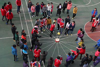孩子們?cè)趷?ài)心志愿者的陪伴下參加了一場(chǎng)妙趣橫生的新年趣味運(yùn)動(dòng)會(huì)。 記者 李文科 攝